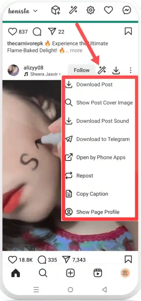 Honista latest version offers modified alternatives with amazing features that are currently not available in the officially recognized Instagram app. After downloading and installing the Honista app, you can save posts and stories with a single tap on the download option.